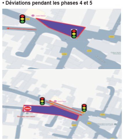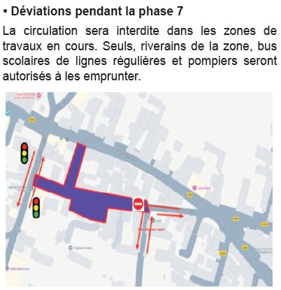 Vous trouverez ci-joint en image les déviations fléchées selon l'avancée des travaux.