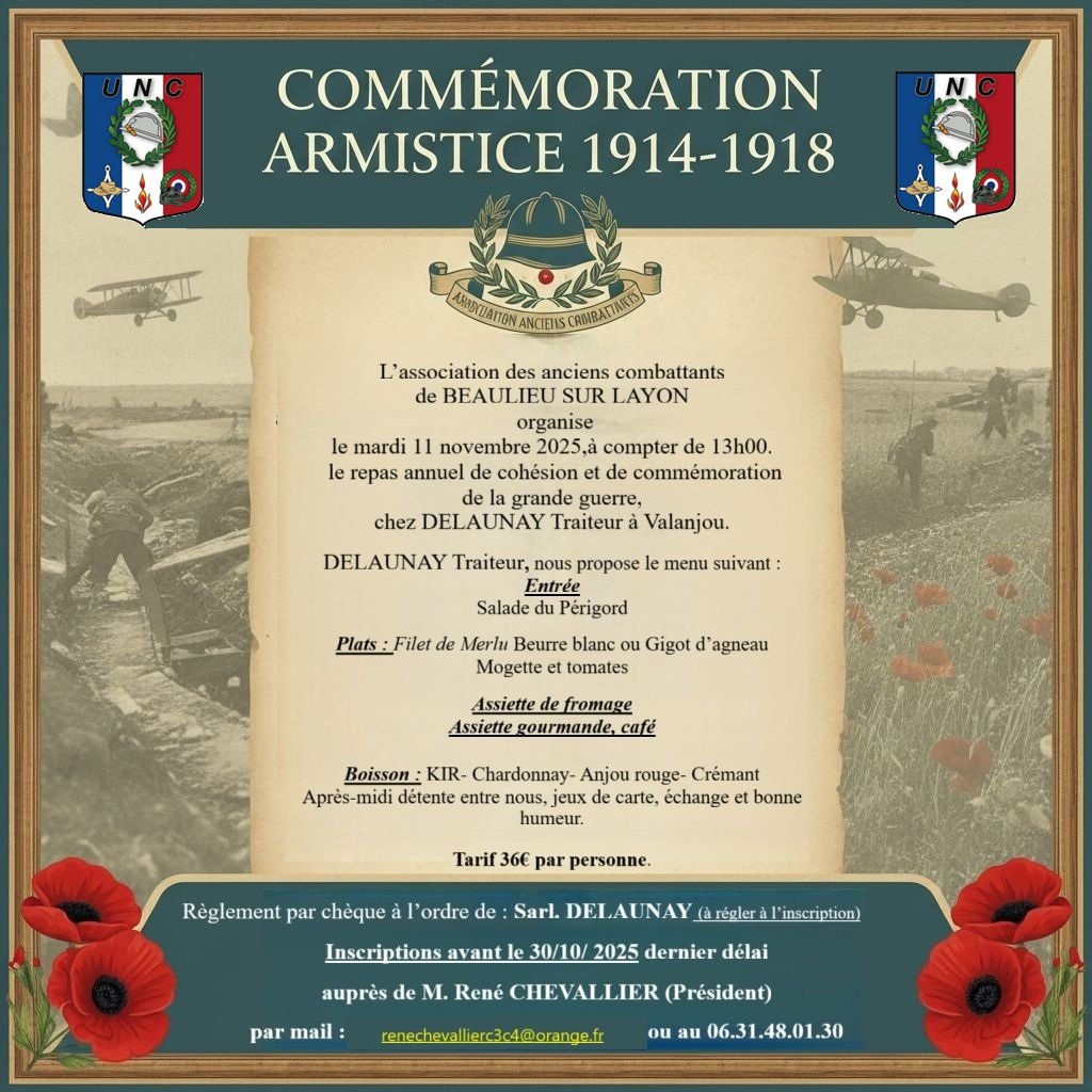 Ci-joint une invitation de l'asso UNC pour la cérémonie du 11 novembre.