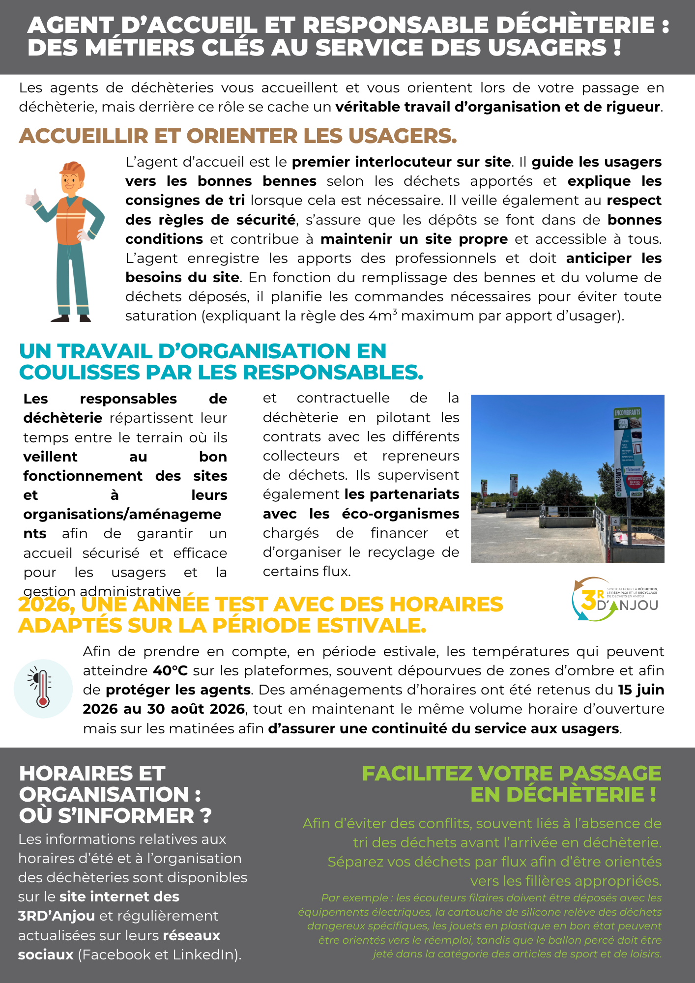 đź NEWSLETTER DE 3RD'ANJOU : AGENT DâACCUEIL ET RESPONSABLE DĂCHĂTERIE