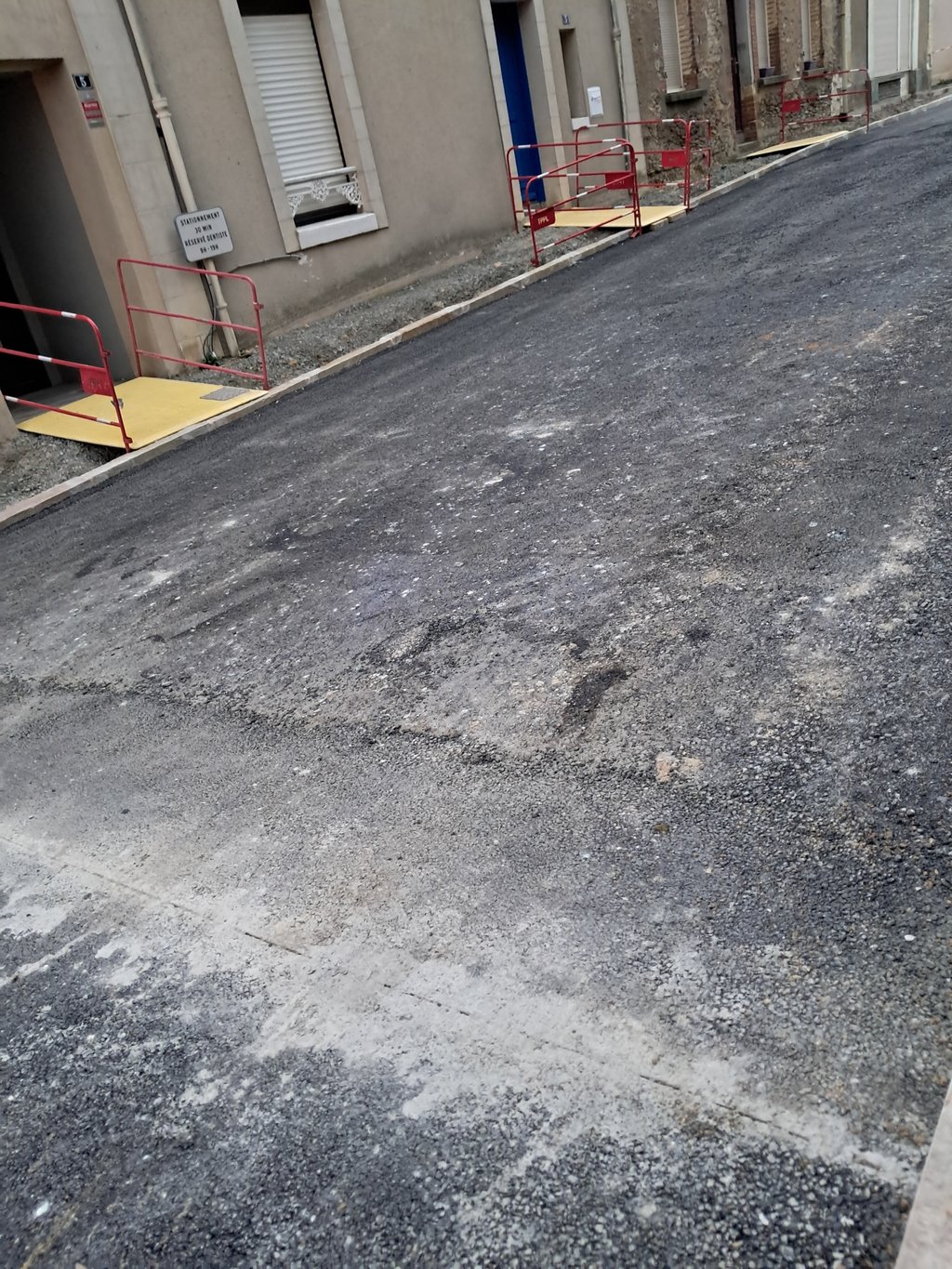 Sur le haut de la rue, un enrobé grenaillé sera posé en même temps que celui de la place, en février (sous réserve du temps). Cela n’empêche pas la circulation dessus.