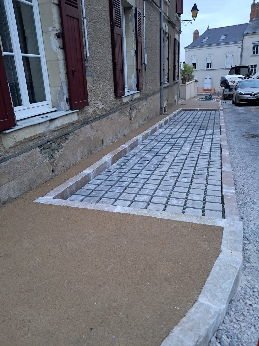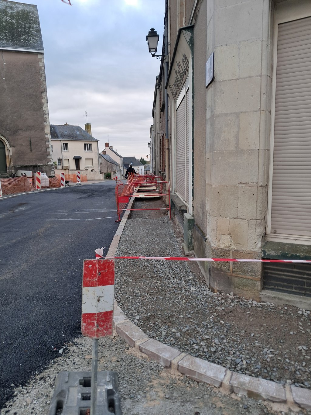 Le chantier se termine côté rue Rabelais et rue de l’Église. Il restera à poser les pavés sur le parking du grand trottoir.
