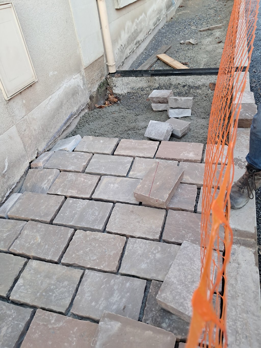 - Pour la rue Rabelais,  nous avons reçu les pavés de grès, un essai de pose a été validé ce matin.