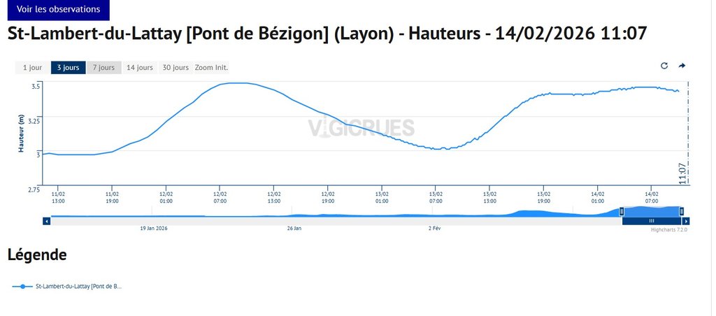 Les précipitations associées à la perturbation qui a traversé le territoire vendredi 13/02 ont entraîné de nouvelles réactions des cours d'eau et contribuent au maintien des niveaux déjà élevés.