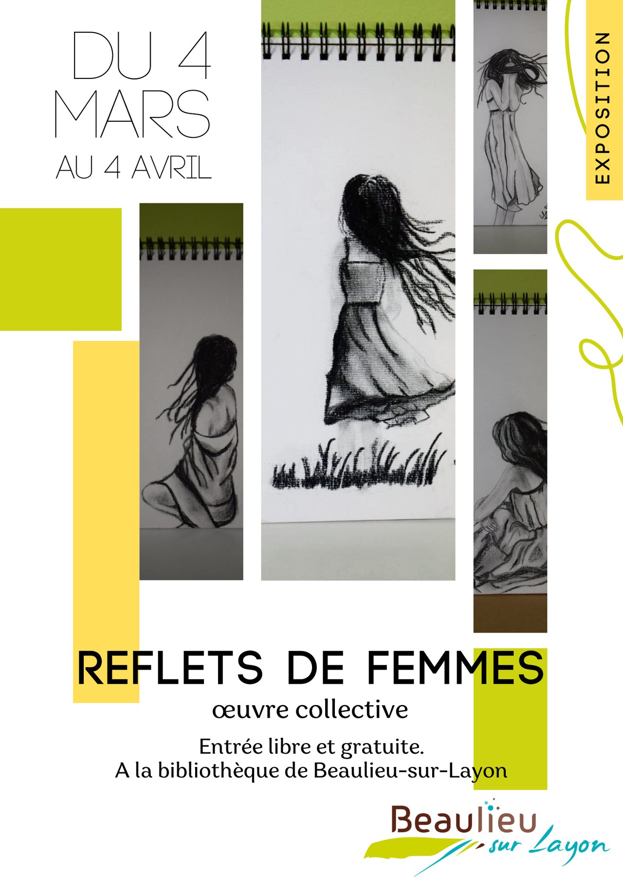 Du 4 mars au 4 avril 2026, la Bibliothèque de Beaulieu-sur-Layon consacre ses murs à une exposition collective : "Reflets de femmes"